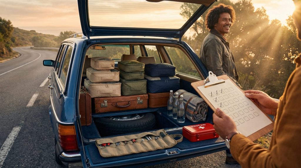Uma das regras de ouro das viagens de carro é diferenciar o que vai no porta-malas do que precisa estar dentro do habitáculo do veículo. O “kit de cabine” engloba tudo aquilo que você pode precisar sem ter que parar o carro e abrir a mala. Essa separação garante conforto e agilidade, especialmente em trajetos longos ou com crianças.
